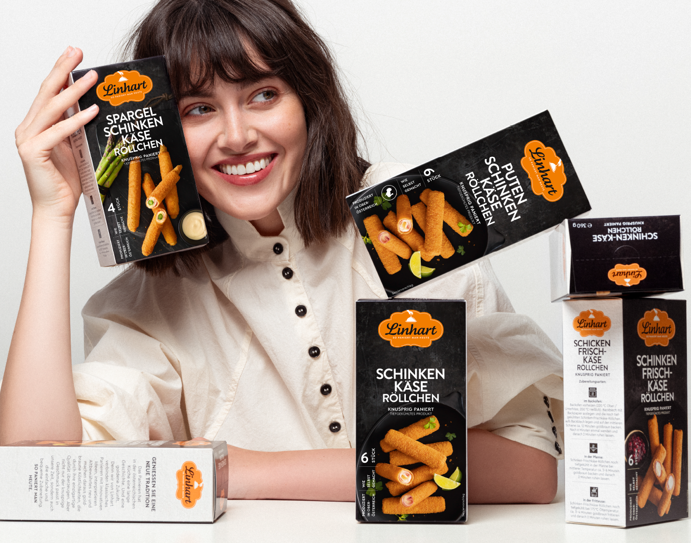 Patentiert paniert Mit einem eigens entwickelten, patentierten Verfahren bewahren wir die Saftigkeit der Füllung, verleihen der Hülle perfekte Knusprigkeit und kreieren ein Zusammenspiel, das seinesgleichen sucht. Nur Linhart Röllchen dürfen so gefertigt werden – und nur hier entfaltet sich dieser unverkennbare Moment der Harmonie zwischen Schinken, Käse und knuspriger Panade. Ein echtes Signature Piece.